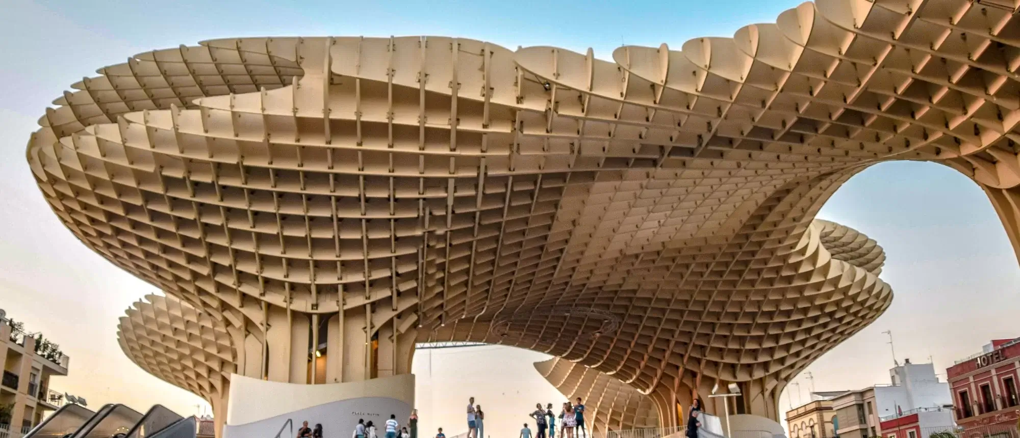 Inaugurado em 2011, o Metropol Parasol é uma estrutura de madeira laminada cruzada que mede 150 por 70 metros e atinge 26 metros de altura, sendo considerada a maior estrutura de madeira do mundo. Projetada pelo arquiteto alemão Jürgen Mayer, a obra fica na Plaza de la Encarnación e custou cerca de 100 milhões de euros.